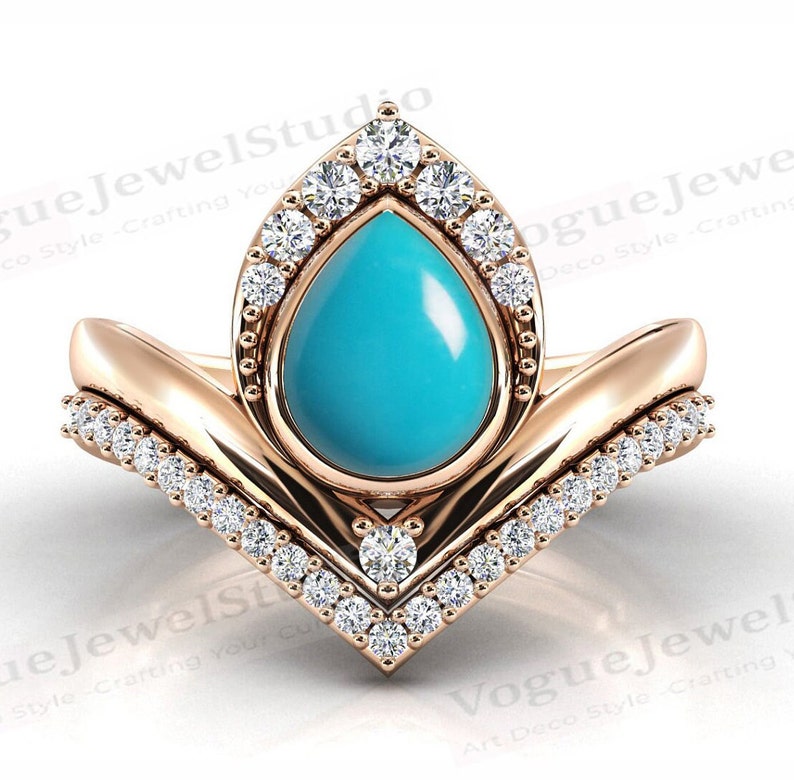 Pear Cut Turquoise Engagement Ring Set Vintage Turquoise Antique Wedding Ring Set 14k Gold Art Deco Turquoise Anniversary Ring Set For Women Www Arslan Av Tr